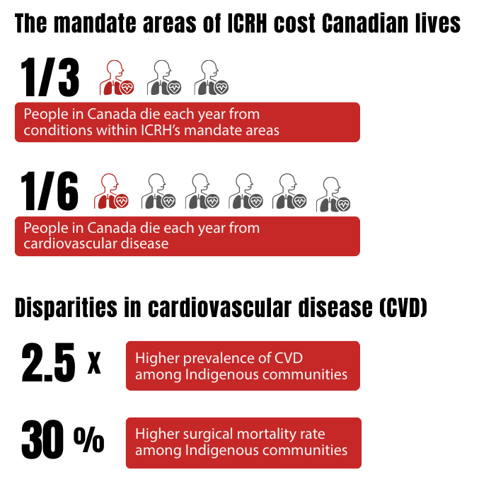 - One (1) in three (3) people in Canada die each year from conditions within ICRH's mandate areas